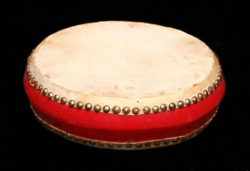 書鼓,鼓中形制較小者。鼓身呈扁圓形產(chǎn),鼓框用硬質(zhì)木料制作,兩面蒙以牛皮。鼓身四周刷朱漆。鼓面直徑22—30厘米,鼓身高8—8.5厘米。發(fā)音較小堂鼓低,但很響亮。專用于北方說唱音樂“大鼓書”等各種鼓書伴奏。演奏時,用一支竹制鼓箭敲擊。書鼓置于竹制鼓架的編繩上,架高90厘米左右。說唱演員左手執(zhí)書板或梨花片,右手執(zhí)鼓箭擊鼓表演。