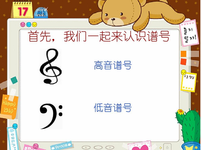1、高音譜號,又叫G譜號。用它來記寫的譜表,叫高音譜表,第中央C在下加一線上。第二線,是畫高音譜號時起筆的那條線,規(guī)定音高為G,所以,高音譜號才也叫做G譜號。拍號位四分之四拍,每小節(jié)有四拍。如果是四分之二拍,每小節(jié)有兩拍。