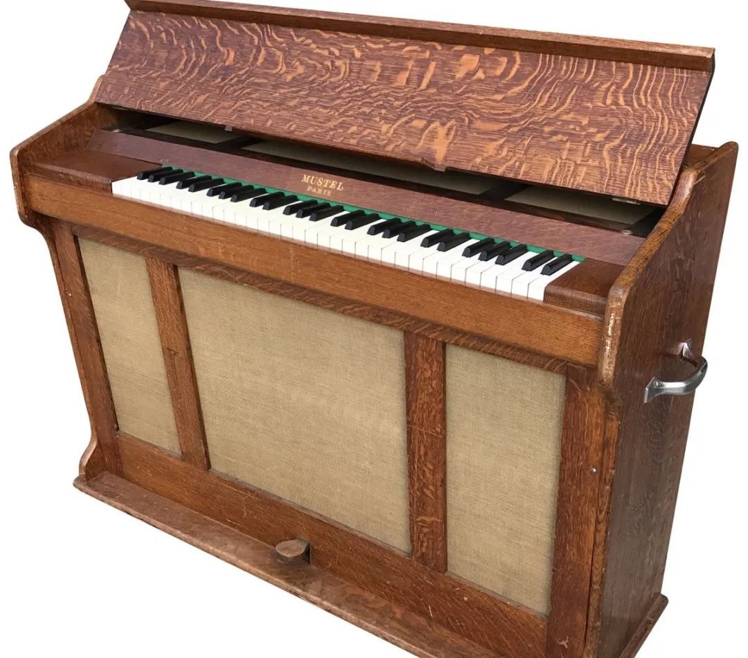 鋼片琴為法國(guó)巴黎mustel,victer發(fā)明。其子(mustel,奧古斯特)申請(qǐng)專利而正式有此樂器,最初的發(fā)音體用一系列音叉,亦稱鋼叉琴。1886年正式命名為鋼片琴,實(shí)際現(xiàn)在的鋼片琴音條和共鳴管均以鋁制作。本來是專利品,不過專利權(quán)已消失,因此開始有了音域擴(kuò)增了低一勻的樂器。