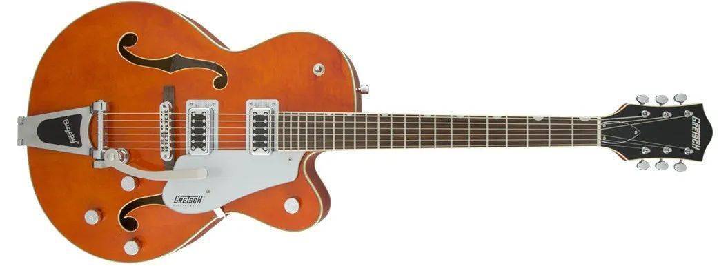 早期的”空心電吉他”只是將一個(gè)拾音器裝在有著拱形面板, f型音孔的鋼弦吉他上,gibson在1935年推出es-150,即是此種”空心電吉他”,這種吉他可以完全當(dāng)做一個(gè)空心吉他來使用。