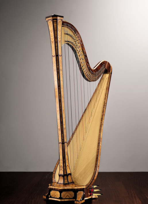 豎琴是一種大型撥弦樂器。豎琴是世界上最古老的撥弦樂器之一,起源于古波斯(伊朗),據(jù)埃及古圖記載,豎琴出現(xiàn)于公元前三、四千年。當時的形狀猶如一個有弦之弓。早期的豎琴只具有按自然音階排列的弦,所奏調(diào)性有限?,F(xiàn)代豎琴是由法國鋼琴制造家S·埃拉爾于1810年設(shè)計出來的,有四十七條不同長度的弦,七個踏板可改變弦音的高低,能奏出所有的調(diào)性。